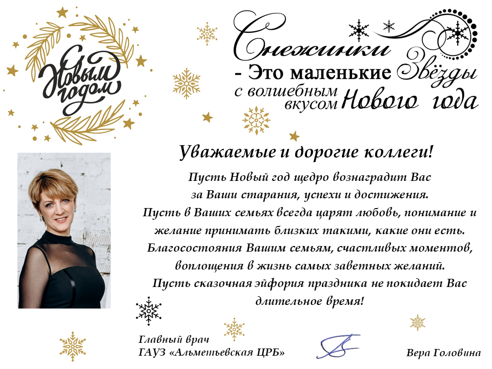 Поздравление главного врача Альметьевской ЦРБ Веры Головиной с наступающим Новым годом!
