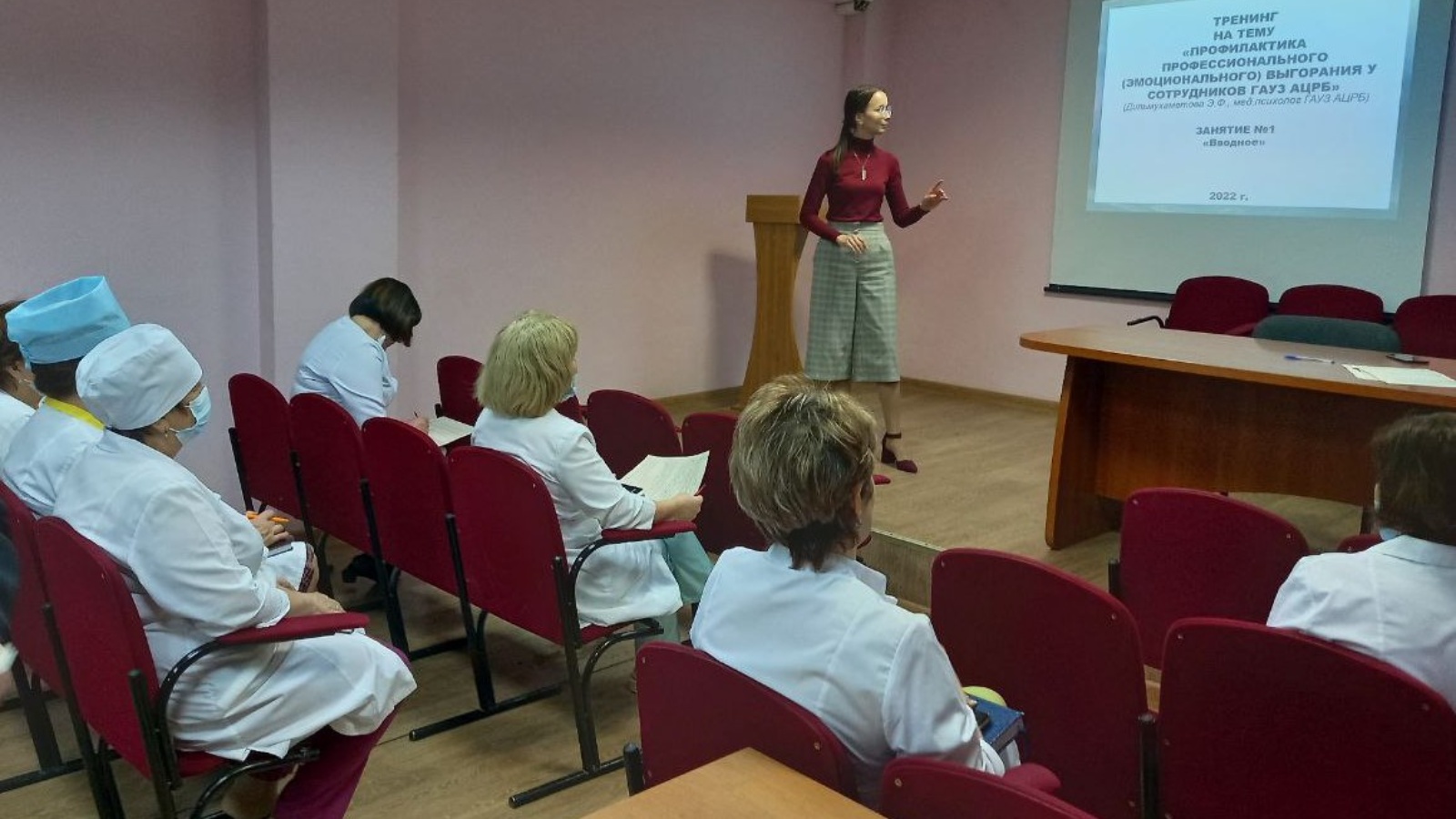 16 декабря 2022 года в Альметьевской ЦРБ прошёл тренинг, посвященный превенции и профилактике синдрома профессионального (эмоционального) выгорания у медицинских работников.