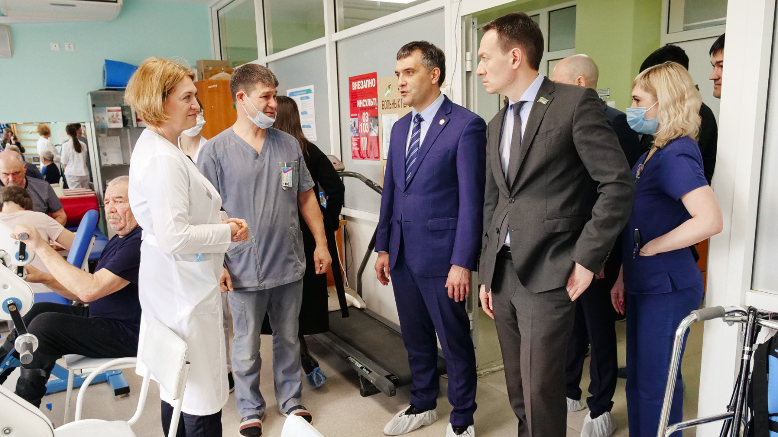 31 марта Министр здравоохранения РТ Марсель Миннуллин посетил Альметьевск. Глава района Тимур Нагуманов и руководитель Управления здравоохранения Ренат Шакиров сопровождали министра на объектах здравоохранения Альметьевского района. В ходе рабочего визита они посетили Альметьевскую центральную районную больницу, где министр ознакомился с ходом масштабного капитального ремонта и строительством нового приемно-диагностического отделения. Отдельно стоящий новый корпус строится в соответствии с современными стандартами, в нем будут три этажа общей площадью 4 тыс. кв. метров. На первом этаже планируется приемно-диагностическое отделение с двумя инфекционными боксами. На других этажах - три операционных зала и реанимация на четырнадцать коек. Министр также осмотрел действующую часть поликлиники и стационара районной больницы.