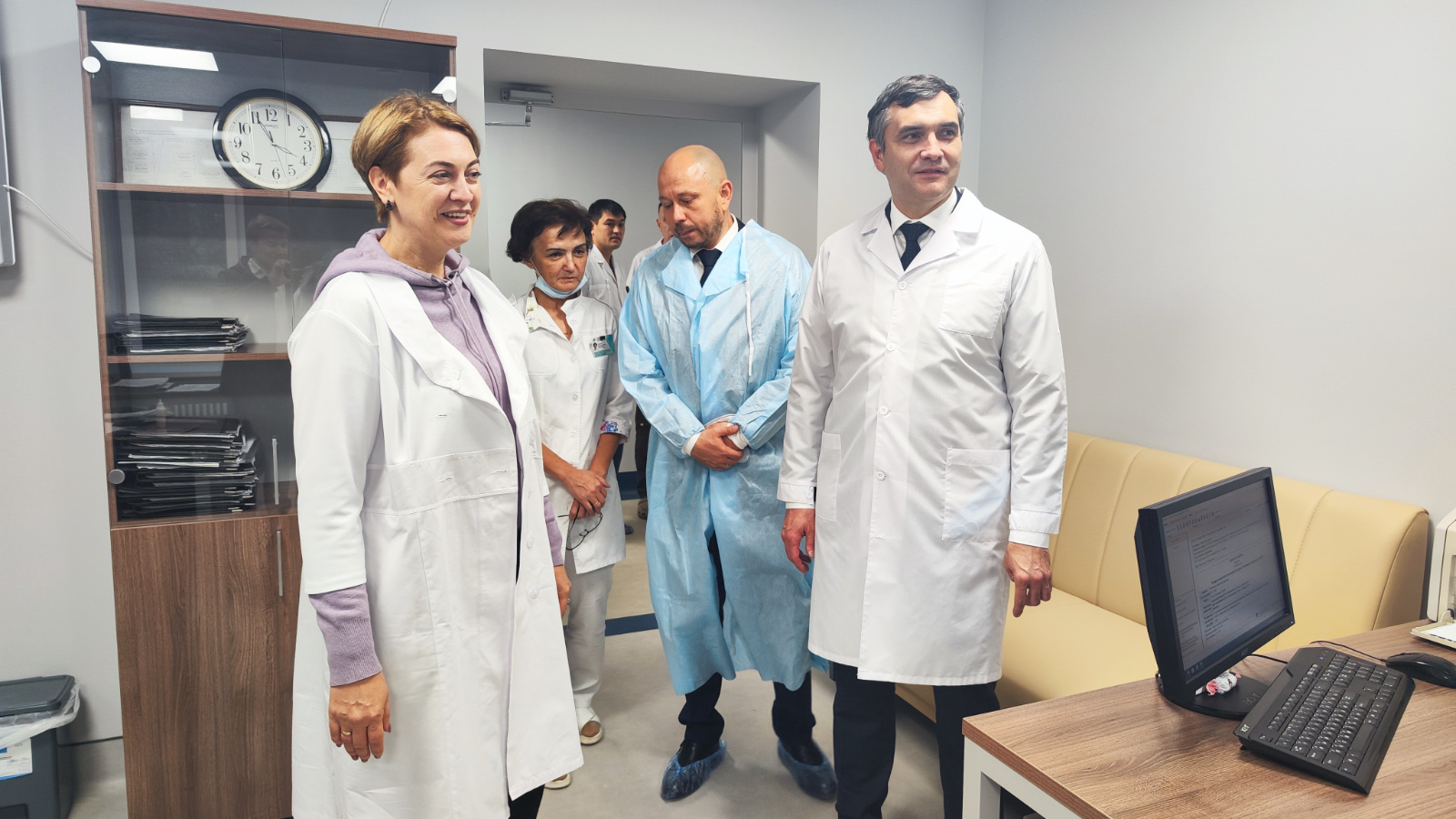 Новый корпус – это функциональное ядро больницы, позволяющее независимо от профиля патологии, провести в короткие сроки диагностическое обследование, провести сортировку и принять решение о дальнейшей тактике ведения пациента. Ввод нового приемно-диагностического отделения позволит качественно улучшить оказываемую медицинскую помощь всем поступающим пациентам, включая пациентов с инфекционными болезнями. Функционал специализированного приемно-диагностического отделения предполагает наличие 2-х инфекционных боксов, 3-х смотровых залов, противошокового зала, диагностических кабинетов магнитно-резонансной томографии, компьютерной томографии, ультразвуковой и эндоскопической диагностики, рентгеновского кабинета для оказания экстренной помощи, отделения анестезиологии и реанимации с 3-мя реанимационными залами на 12 коек и палатой пробуждения на 3 койки, операционного блока с 3-мя операционными залами на 6 столов, в том числе гибридного зала с рентгенологической установкой. На 3-м этаже корпуса будут размещены палаты дневного стационара и помещения для реабилитации. Сейчас работы завершены на 80%, сдача объекта запланирована на конец 2024 года.