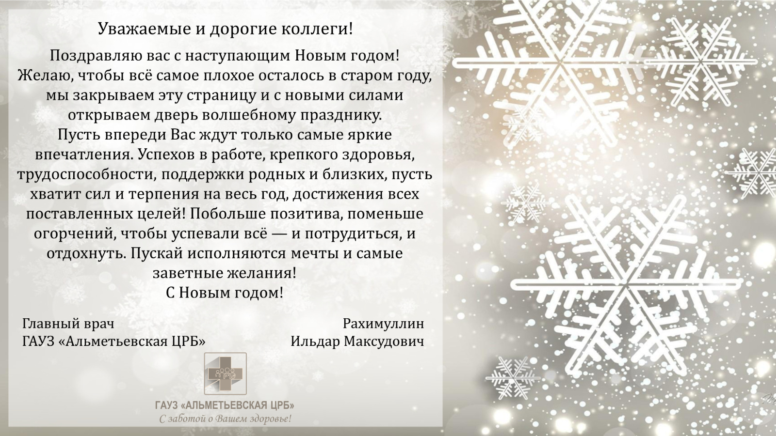 Поздравление главного врача Альметьевской ЦРБ Рахимуллина Ильдара Максудовича с наступающим Новым годом!