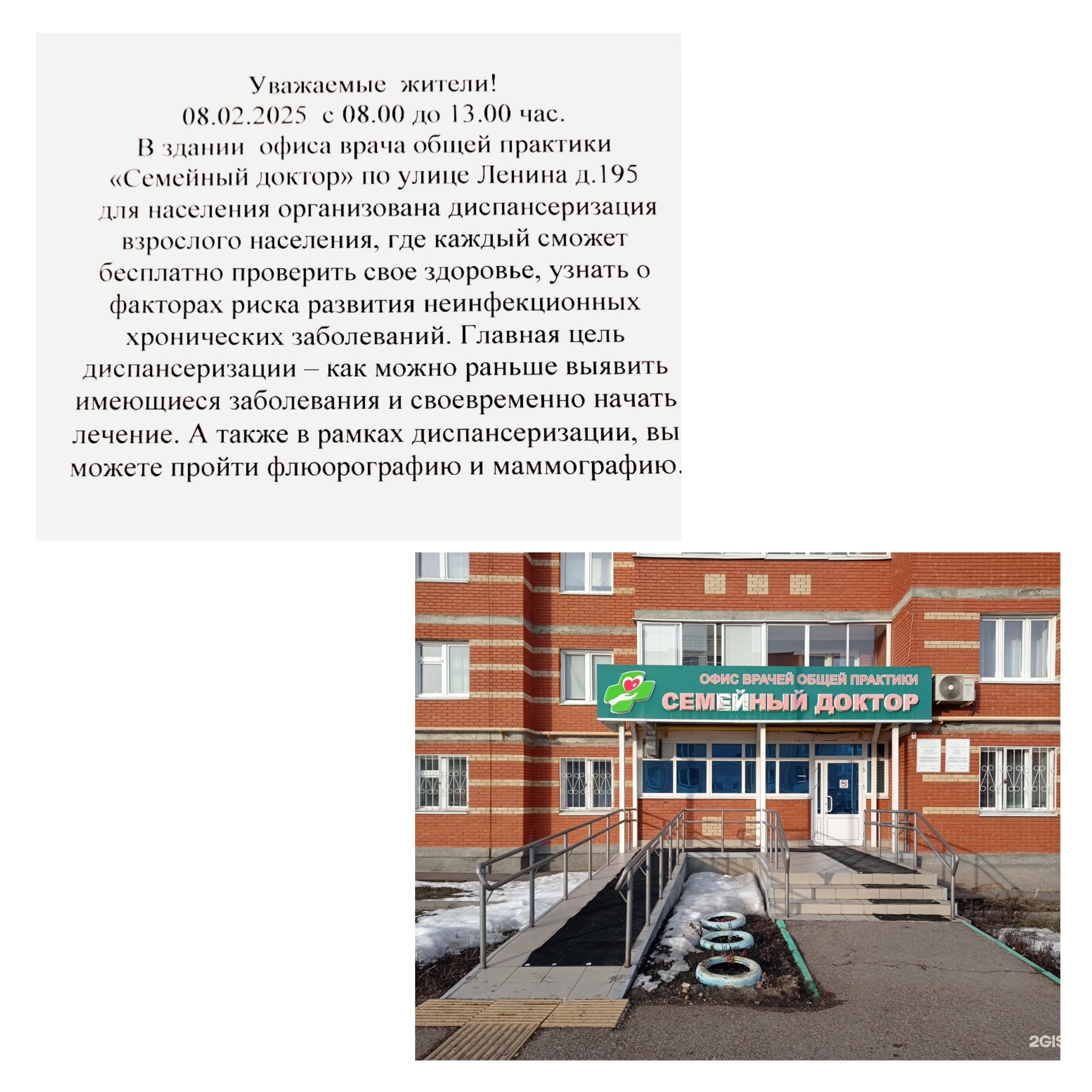 Приглашаем на диспансеризацию в Офис врача общей практики по адресу ул. Ленина, 195