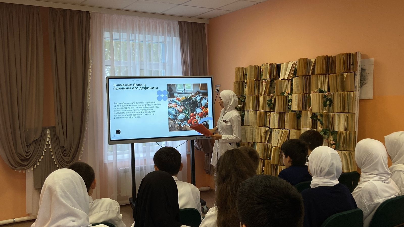 Сегодня медицинская сестра Тайсугановского фельдшерско-акушерского пункта Эльдара Ильдаровна Тазиева провела беседу со школьниками на тему «Йододефицит и его профилактика».
