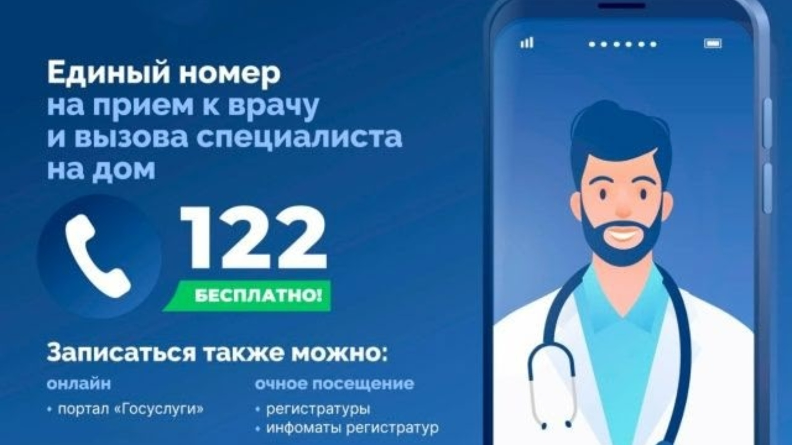 Уведомляем Вас, что запись на прием к врачу в государственные медицинские организации Республики Татарстан посредством телефонии с февраля 2026 года осуществляется по номеру 122 (кнопка 6).️