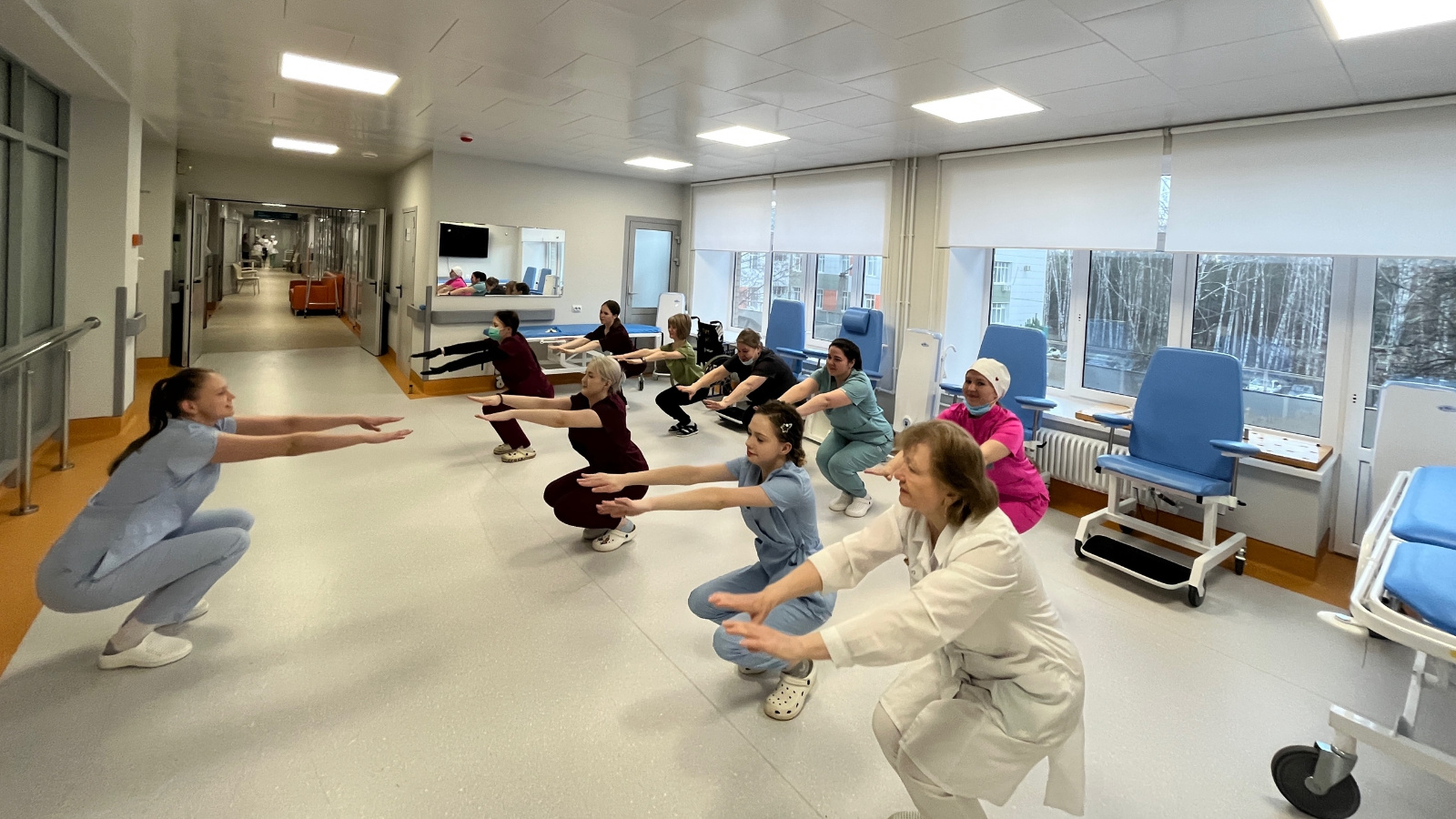 Но мы не ограничиваемся разовыми мероприятиями. Наши врачи, медсёстры и другие специалисты регулярно устраивают физкультминутки прямо на рабочем месте. И это не просто мода — это осознанный выбор в пользу здоровья и бодрости!
